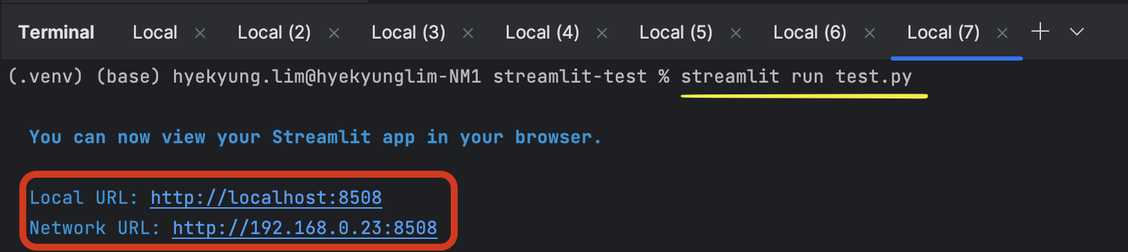 3️⃣ 가상환경의 terminal에가서 아래와 같이 입력하면 URL이 뜬다.